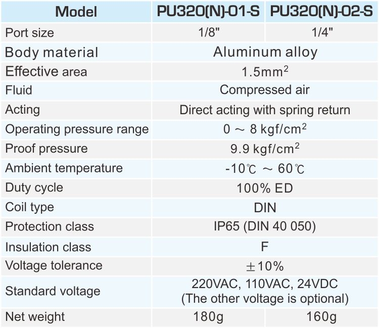 Product Name : PU320 3/2 WAY DIRECT SOLENOID VALVE