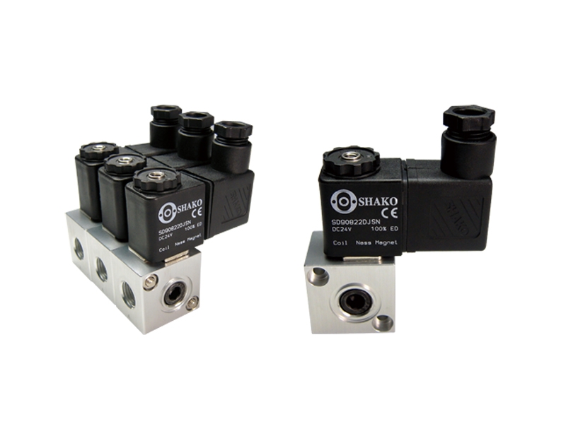 - 3/2 way solenoid valve. The valve is easy to be stacked.